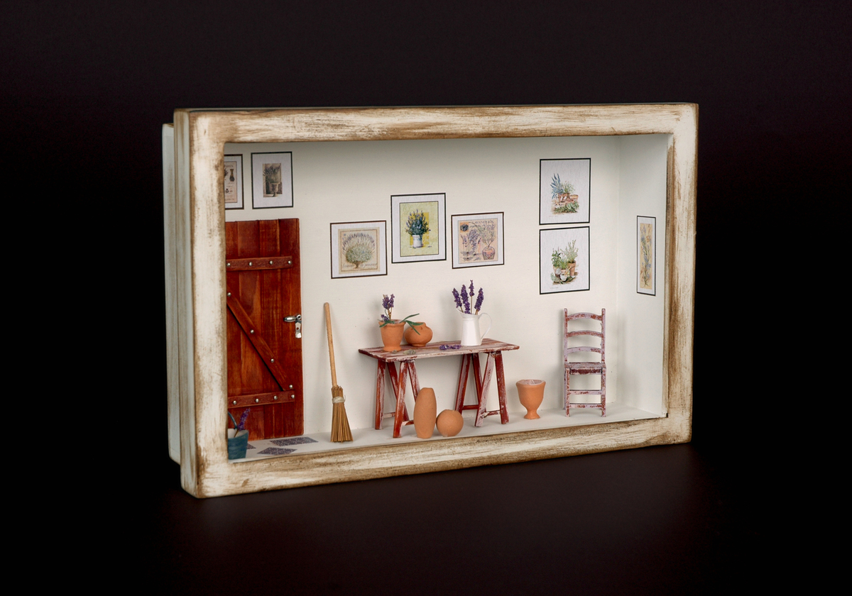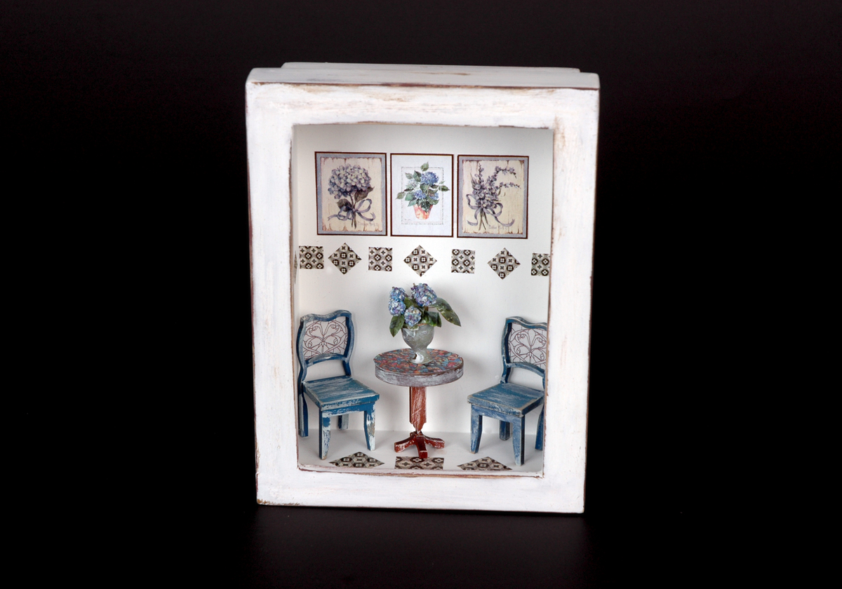 Artesanato em caixas decoradas com miniaturas,